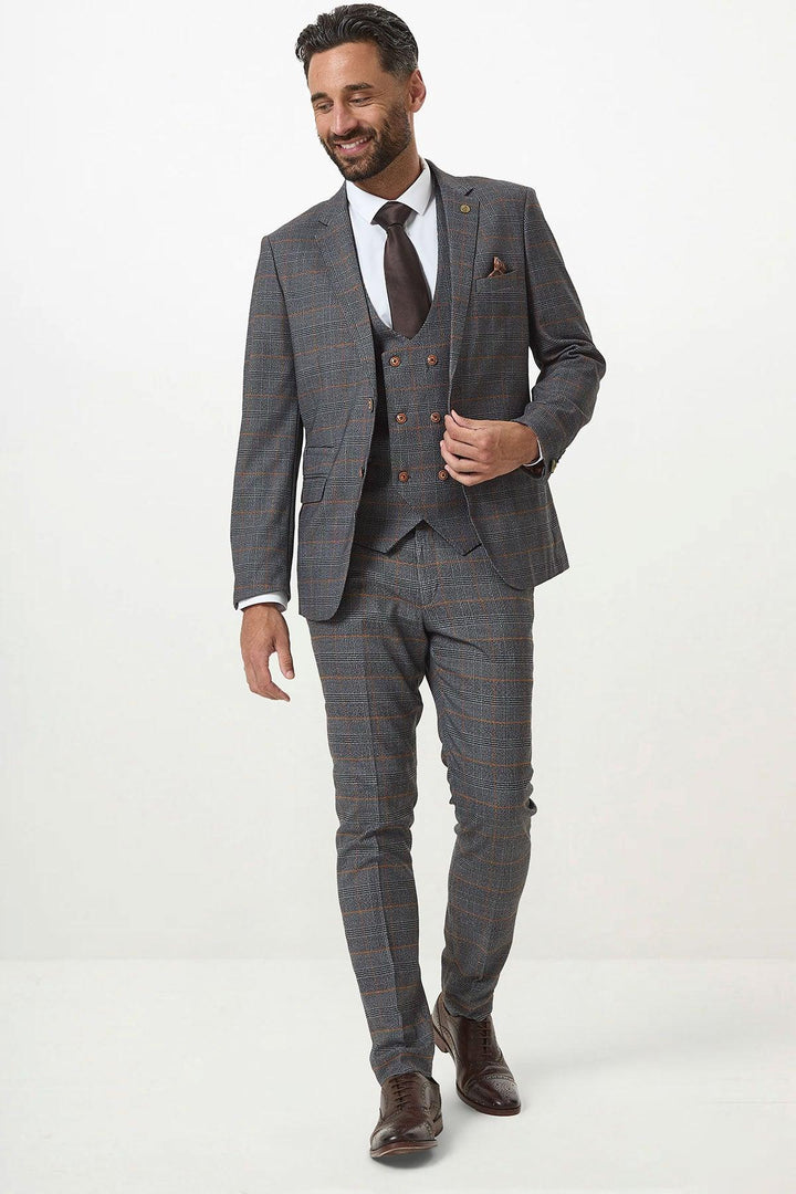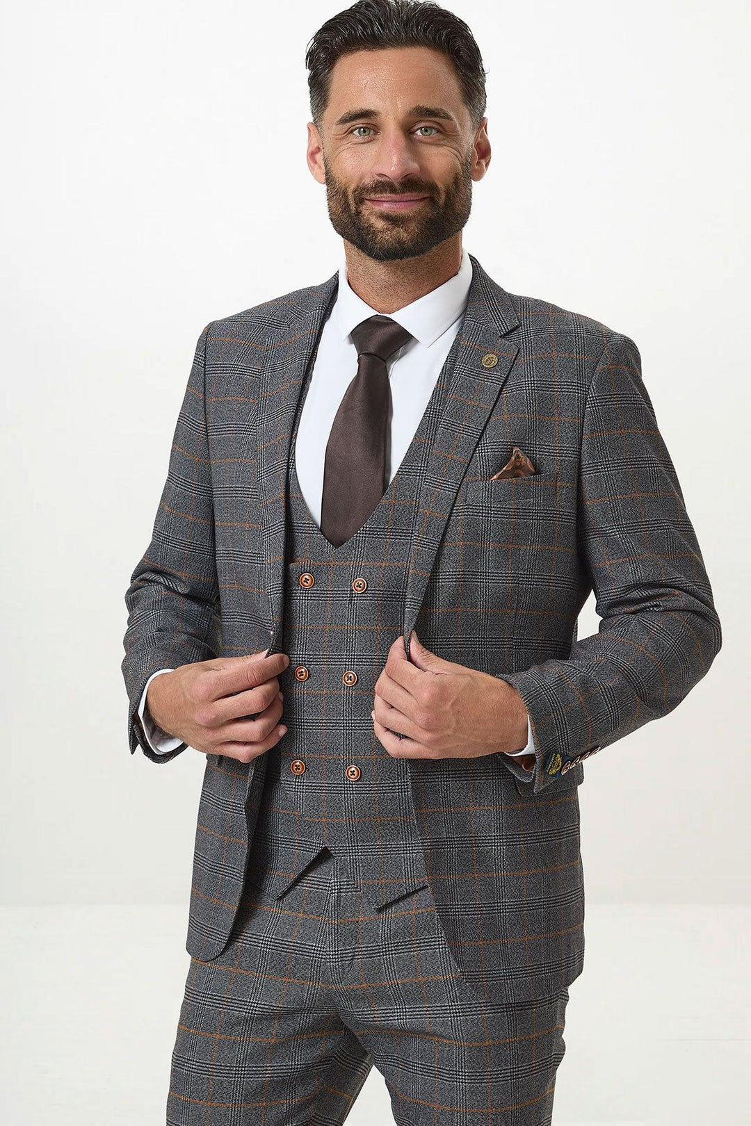 JENSON - Grey Check Suit with Double Breasted Waistcoat