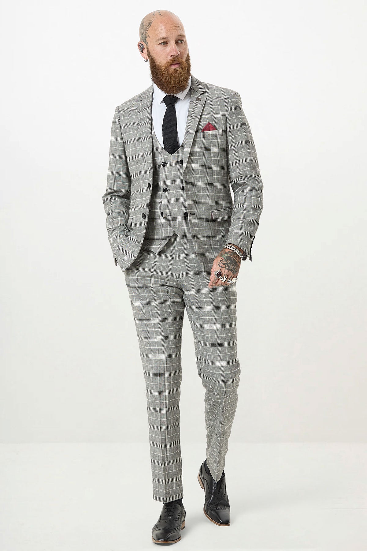 Monochrome is both timeless and sophisticated and can be worn all throughout the year. The Ross suit is no exception boasting the print of the season, Prince of Wales check, it really hits the mark. The double-breasted waistcoat cuts a sartorial silhouette and the subtle burgundy pocket square adds modern appeal.